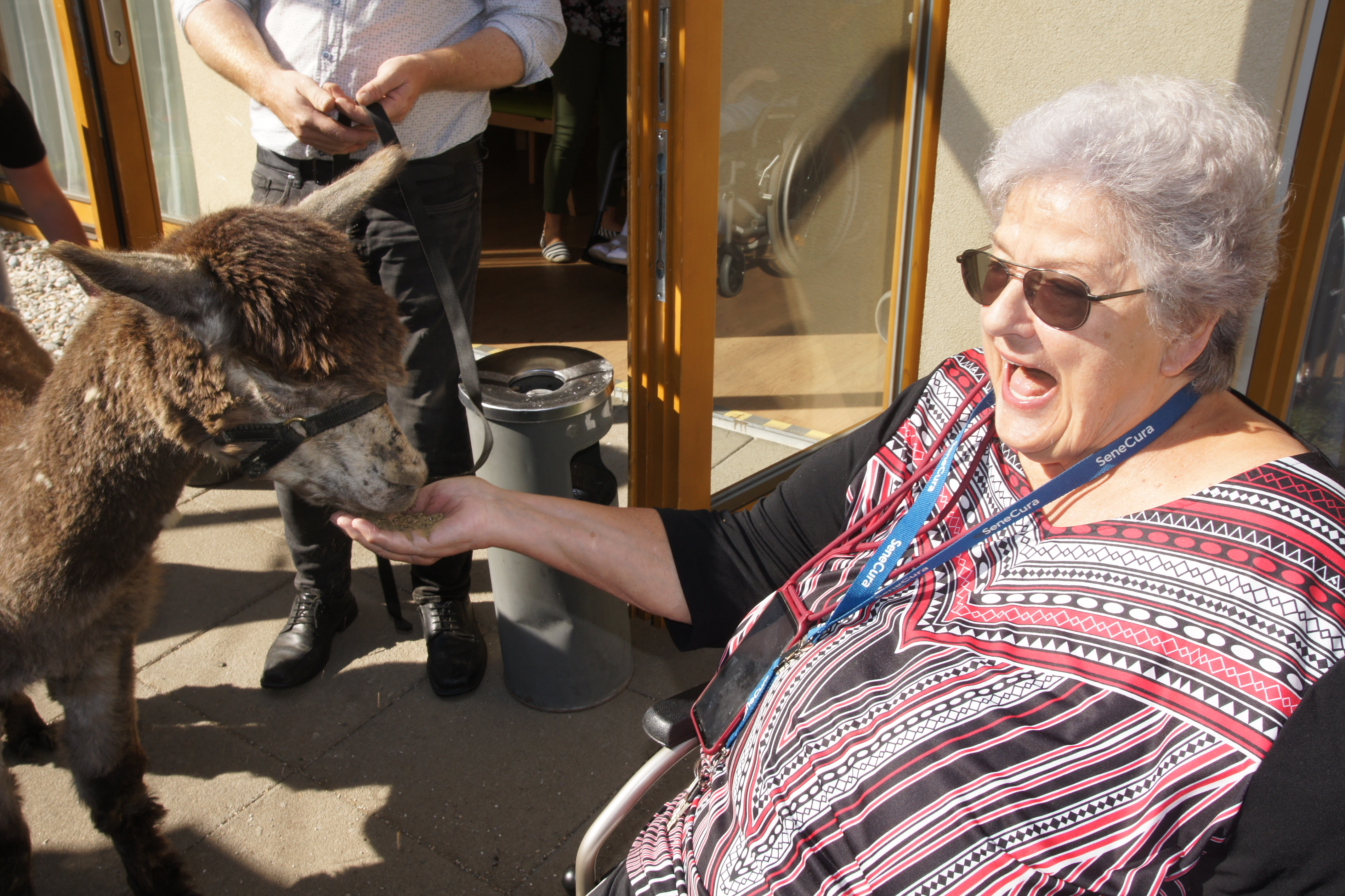 Kürzlich erhielten die Bewohner:innen des SeneCura Pflegezentrums Graz in der Peter-Rosegger-Straße wieder außergewöhnlich flauschigen Besuch. Drei Alpakas sorgten im Haus nämlich für einige strahlende Augen. Bei traumhaften Herbstwetter im hauseigenen Garten wurde den Bewohner:innen, Mitarbeiter:innen und Besucher:innen die Gelegenheit geboten, das weiche Fell der Vierbeiner zu streicheln und sie zu füttern. Die Alpakas wollten unter anderem die Bewohner:innen auch in den Zimmern kennenlernen und haben kleine Besuche abgestattet. Die einzigartige Begegnung mit den Fellnasen wird den Bewohner:innen noch lange in Erinnerung bleiben. Bewohnerin Frau Böhm schwärmt: „So lieb und weich, sowas habe ich noch nie erlebt.“
