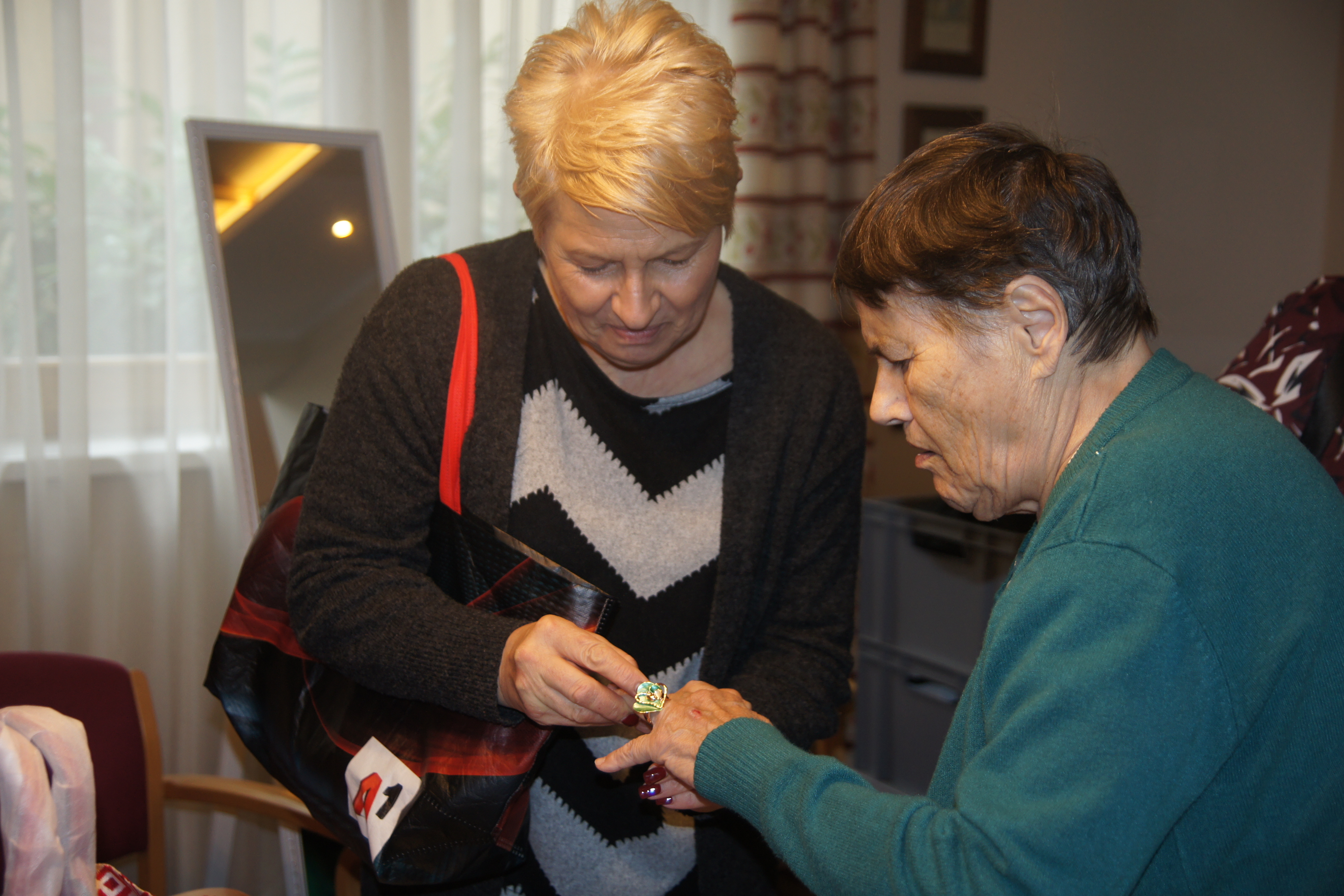 Kürzlich wurde im SeneCura Pflegezentrum Graz in der Peter-Rosegger-Straße wieder die neueste Italienische Mode von der Firma RM-Mode präsentiert. Von Hosen, Pullover, Taschen, Hauben, Handschuhe und funkelndem Schmuck konnte einen ganzen Nachmittag im schönen Ambiente geshoppt werden. So manch schöner Pullover wurde anprobiert und nach einer genauen Begutachtung im Spiegel gekauft. Die Bewohner:innen kleideten sich für den bevorstehenden Winter ein und luden auch einige Angehörige zu diesem Event. Die teilnehmenden Personen waren von diesem Nachmittag mehr als begeistert.