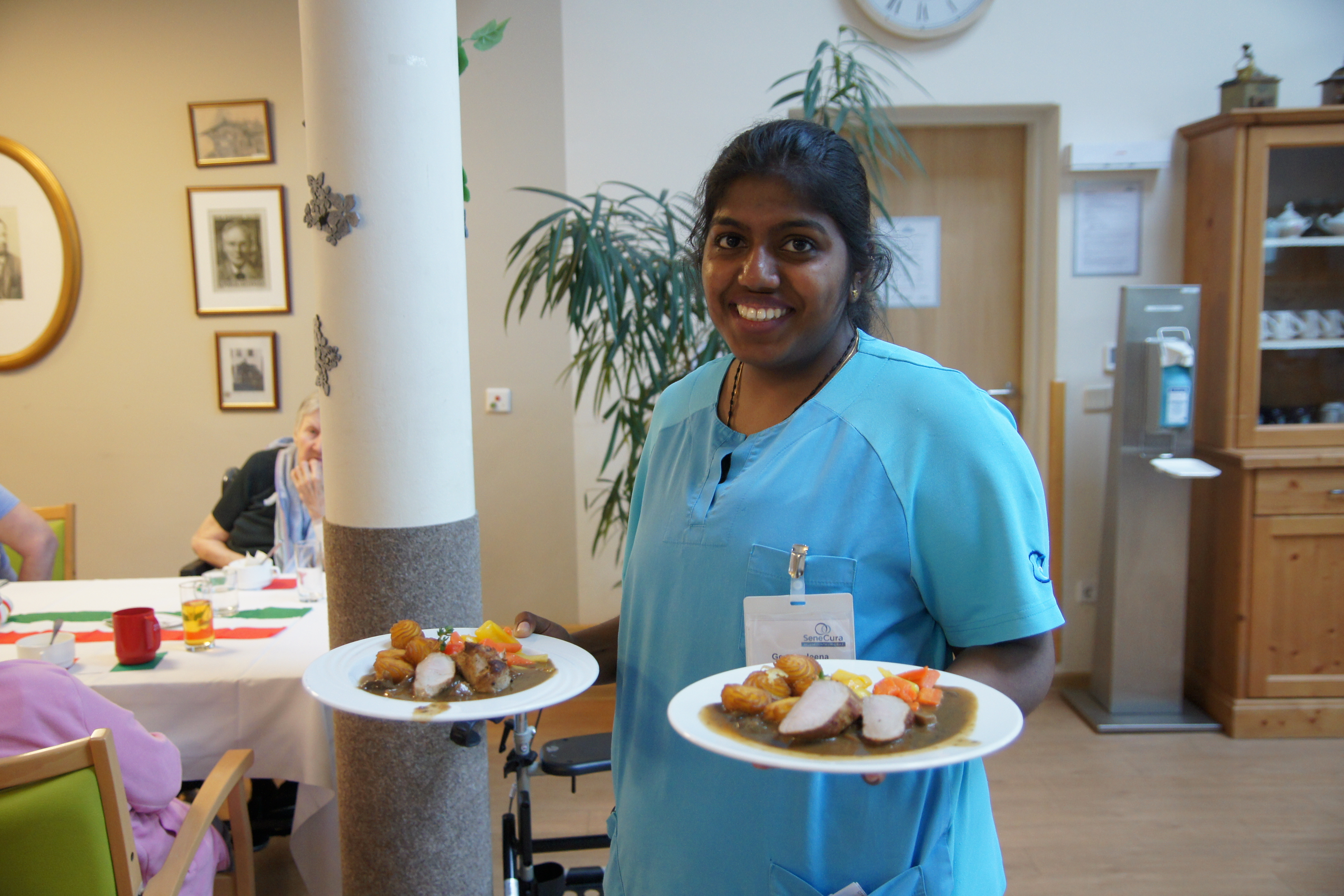 Im liebevoll dekorierten Speisesaal erwarteten die Gäste kulinarische Genüsse, die keine Wünsche offenließen. Das Küchenteam zauberte ein sorgfältig zusammengestelltes 4-Gänge-Menü mit italienischem Flair, das mit einer Vielzahl von Zutaten begeisterte. „Es war ein wahrer Genussabend, bei dem man nicht nur das exzellente Essen, sondern auch die tolle Atmosphäre im Kreise der Familie erleben konnte“, sagte Algis Weber, eine der Bewohnerinnen des Hauses.