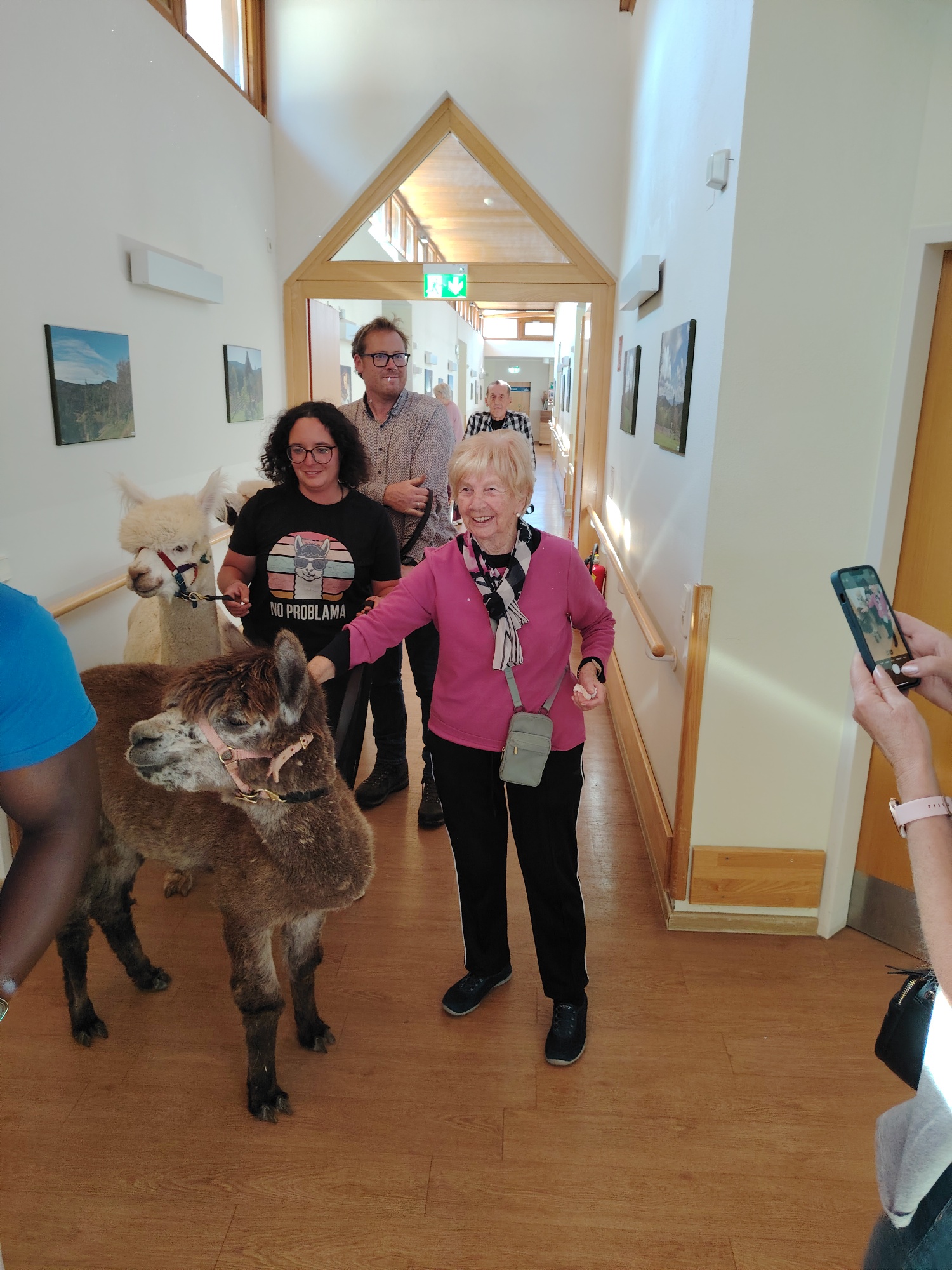 Im SeneCura Pflegezentrum Graz in der Peter-Rosegger-Straße gab es kürzlich einen ganz besonderen Besuch von Alpakas. Die freundlichen Tiere spazierten durch das gesamte Haus, begrüßten die Bewohner:innen auf ihren Zimmern und brachten mit ihrem sanften Wesen viel Freude und Abwechslung ins Haus. Bewohner:innen wie auch Mitarbeiter:innen waren begeistert von den flauschigen Vierbeinern, die für strahlende Gesichter und unvergessliche Momente sorgten.